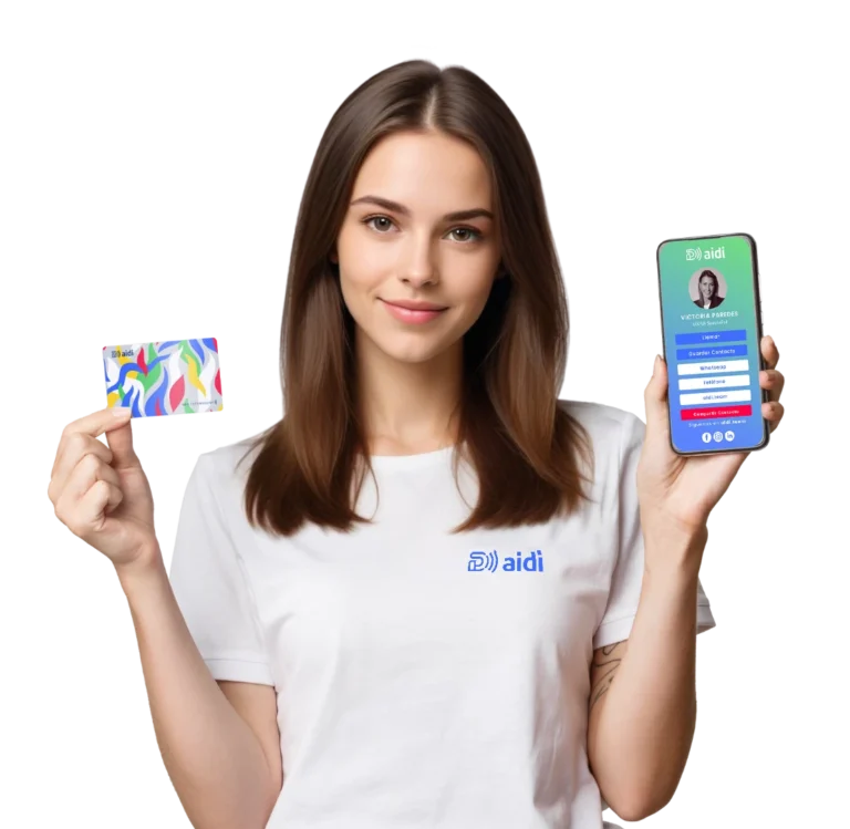 Acerca tu aidi Card a un dispositivo compatible NFC o escanea el código QR y forma parte de esta transformación.
