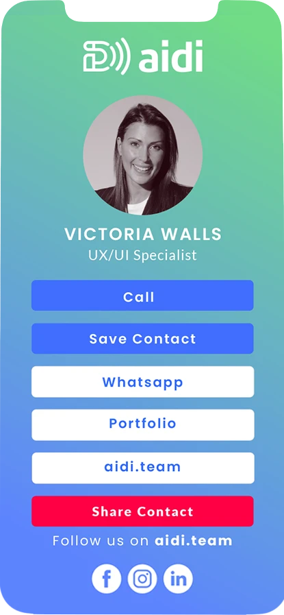 The card is linked to a profile in our web application. You can customize its content and make any changes you need in real time.